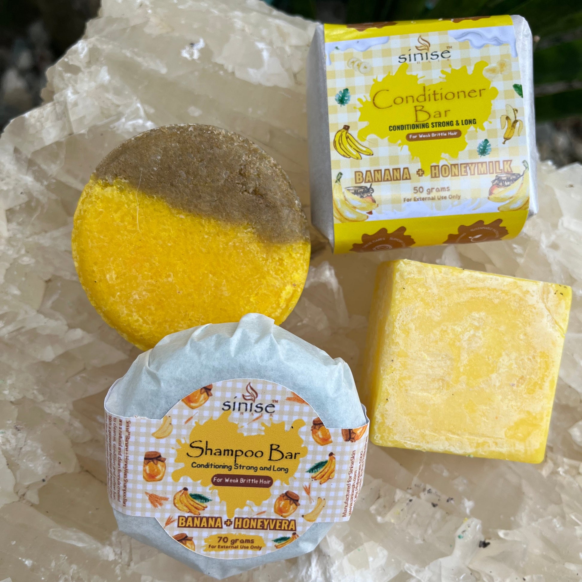 From tropical farms of the Philippines straight to your hair! The Moisture Lock Duo blends banana, aloe vera, and honey to help nourish and refresh brittle strands.