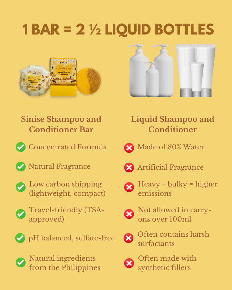 Most liquid shampoos are 80% water! They’re filled with harsh chemicals, leak in your bag, and run out too fast.