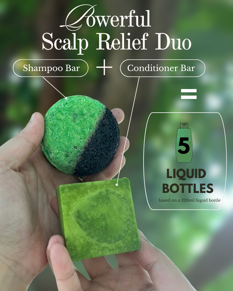 From tropical farms of the Philippines straight to your hair! The Scalp Relief Duo blends activated charcoal, tea tree extract, and olive oil to purify, soothe, and nourish from root to tip.