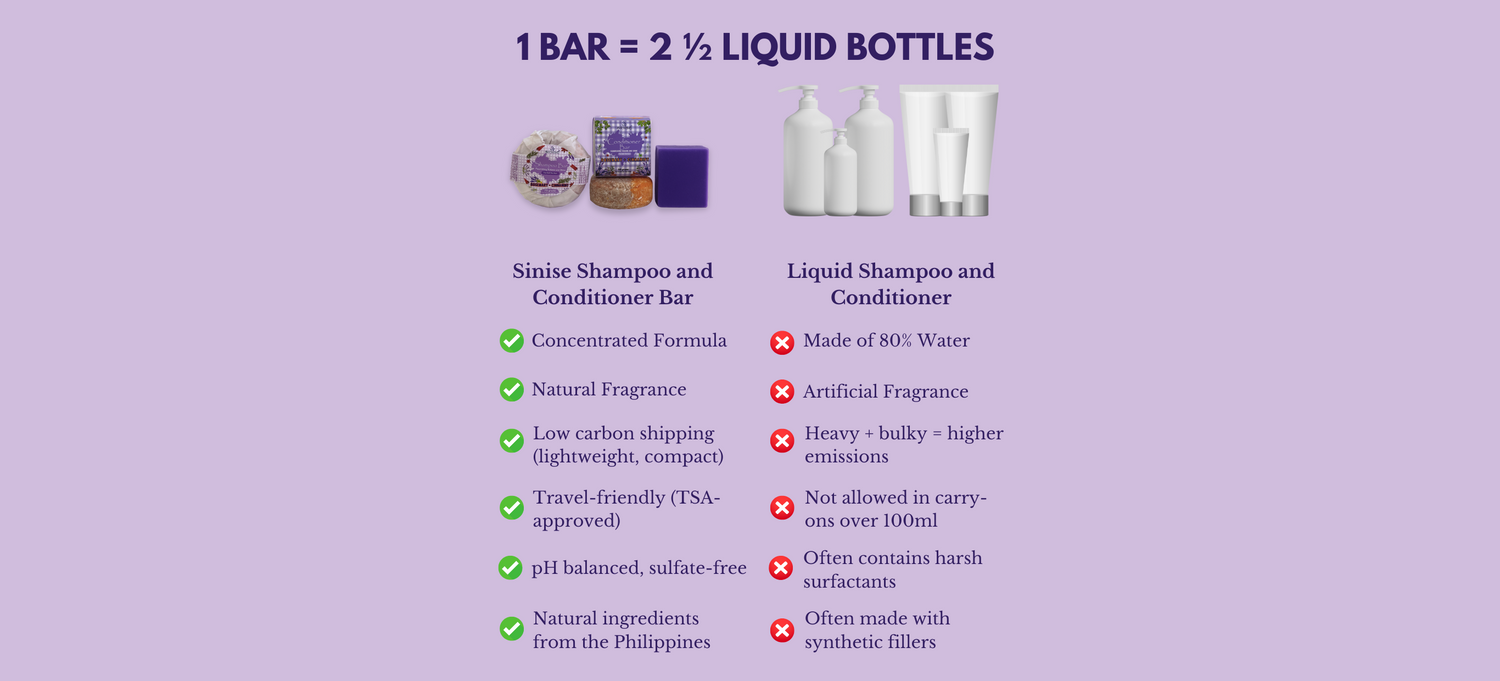 Most liquid shampoos are 80% water! They’re filled with harsh chemicals, leak in your bag, and run out too fast.